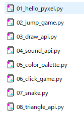 pyxel用の勉強用ソース(8個)
