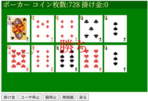 挑戦、一発勝負取得したカードのみでコンピュータと勝負するカードゲームです。